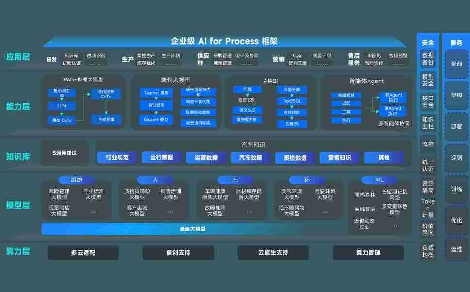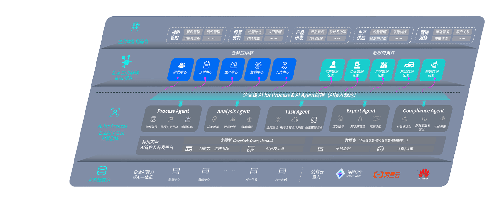 壹号平台问学智车解决方案是一套基于AI技术的汽车行业智能化系统,,,,覆盖从底层算力到顶层AI应用的全栈方案。。。方案由算力层、、、、模型层和应用层组成:算力层,,,方案支持多种一体机配置,,具备云端灵活部署、、、多云适配以及动态优化计算资源的能力;模型层,,,壹号平台问学平台版提供了企业级AI应用一站式构建与管理平台,,,,支持基于后训练强化技术的汽车企业专属模型的训练、、、、评测和运营;应用层,,,壹号平台问学DeepSeek版提供包括超级员工、、、、智能招采、、智能营销、、、、智能客服、、AI for BI等一系列解决方案,,,,可助力汽车行业实现数字化转型,,,,让管理更智能、、、、响应更敏捷。。。。