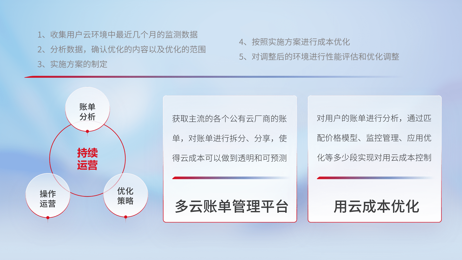 监控业务系统资源开销,,对资源的消耗精确计量,,,,实现费用的透明化管理,,,不断提升资源使用率,,调整资源购买方式,,降低资源费用成本,,,用云成本可预测、、、用云费用可优化,,,云资源配额有据可依。。