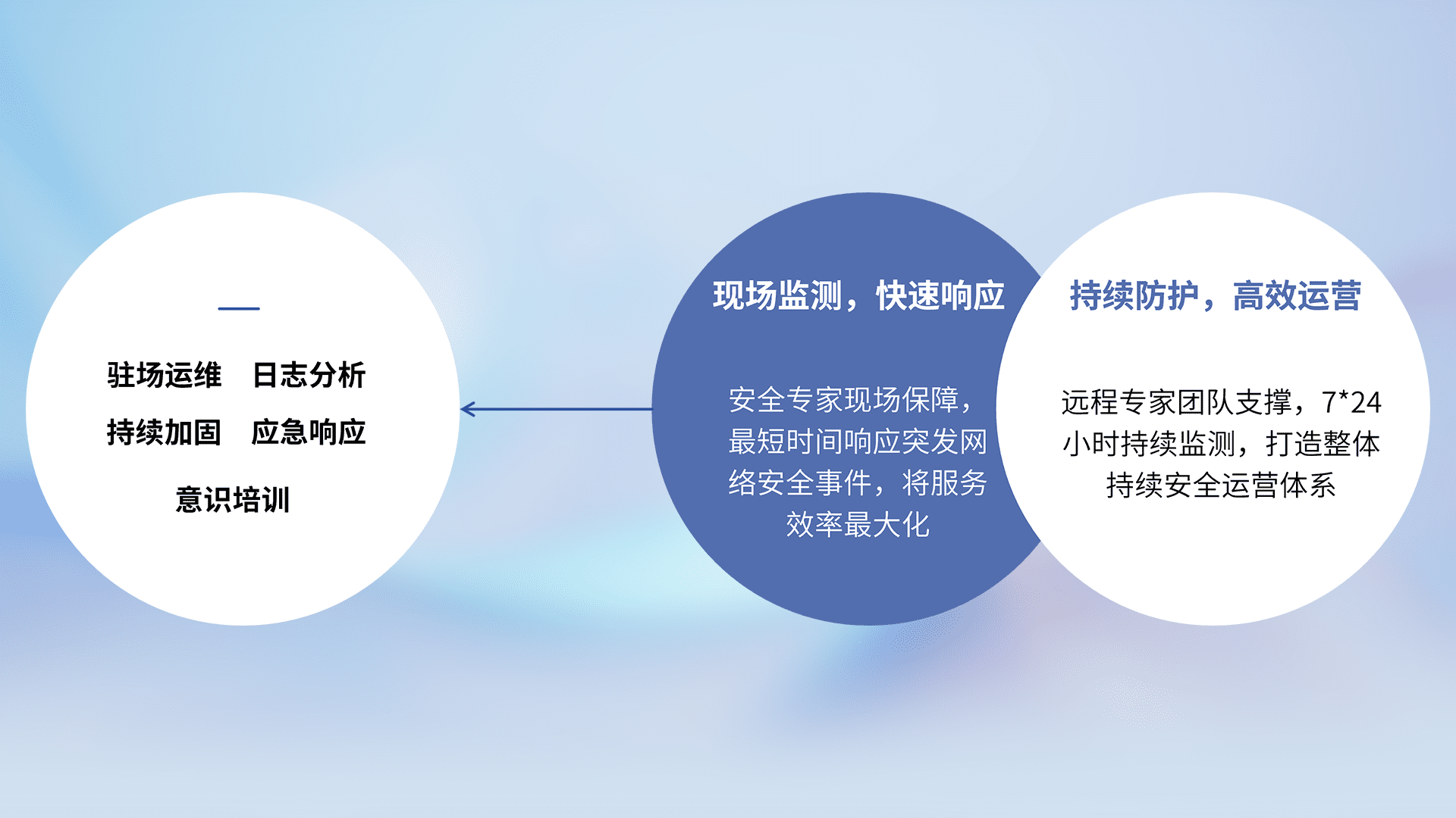 7X24小时持续监测安全事件,保持安全策略有效性,降低资产脆弱性风险,,,,精准拦截黑客攻击,,,减少被黑客利用的机会,,,第一时间遏制,,降低损失。。